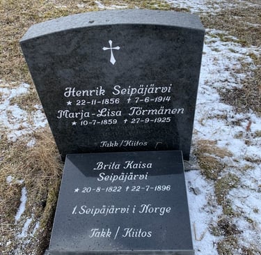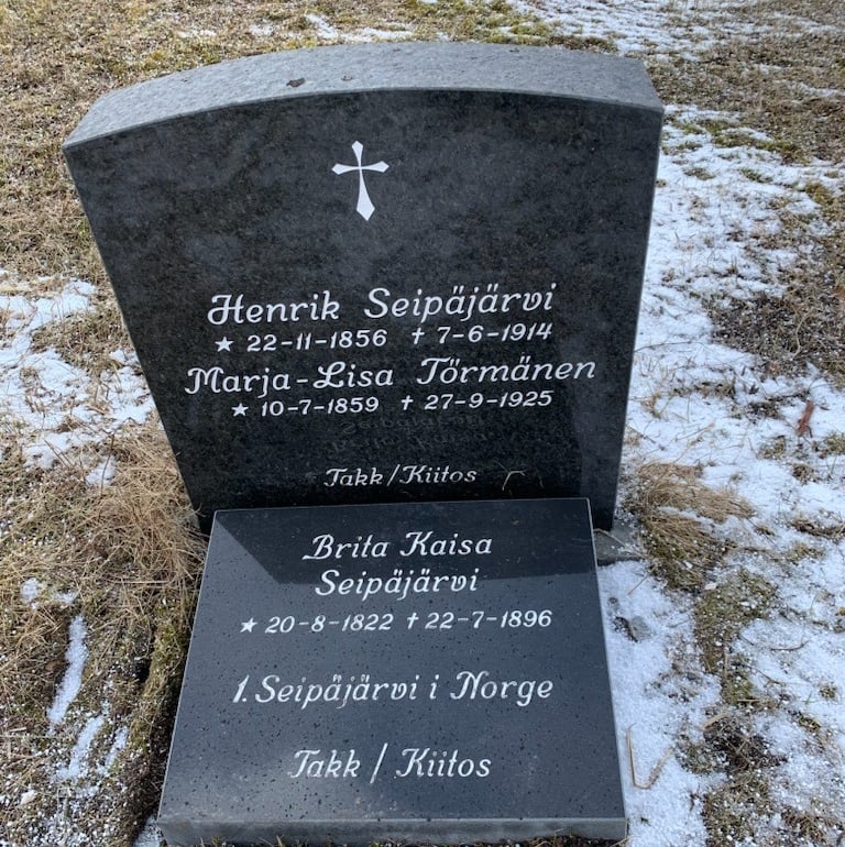 Men. Helt til slutt. Tenk at jeg har fått skrive historien til Brita Caisa. Tenk at jeg fant den, og at den er litt min, og at jeg nå har laget min versjon. Noe av det første som skjedde etter utgivelsen av Kniven i ilden, var at jeg fikk mail fra andre slektninger av henne, barnebarn av Heikki og Aleksi, som lurte på hvem jeg var som skrev om Brita Caisa. Da kunne jeg fortelle at Brita Caisa fikk disse to jentene med Mikkel Aska, hvor en var min tippoldemor Britha Marie. På grunn av trilogien, fikk Brita Caisa egen plate til minne på kirkegården i Bugøynes. Der kan dere finne den. God sommer!