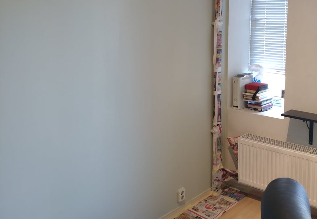 Jeg holder på med andre ting enn å sørge, altså. Livet har full fart. Høsten spraker og sparker fra i motbakkene. Håndballkamper og oppussing av leiligheter for sønner. Kjøpte en tube med sparkel og sparklet skruehull i gipsvegger og malte i sommergrønt. Tuben var så smart at jeg ble skikkelig fornøyd. Tidligere har prosjekter vært større, og sparkel har kommet i bøtter, og resultatet har ikke blitt spesielt bra, for jeg er ikke et petimeter. Men de små flekkene, vusj borte. Tuben med sparkel, lett å håndtere. Veggen ble bra!